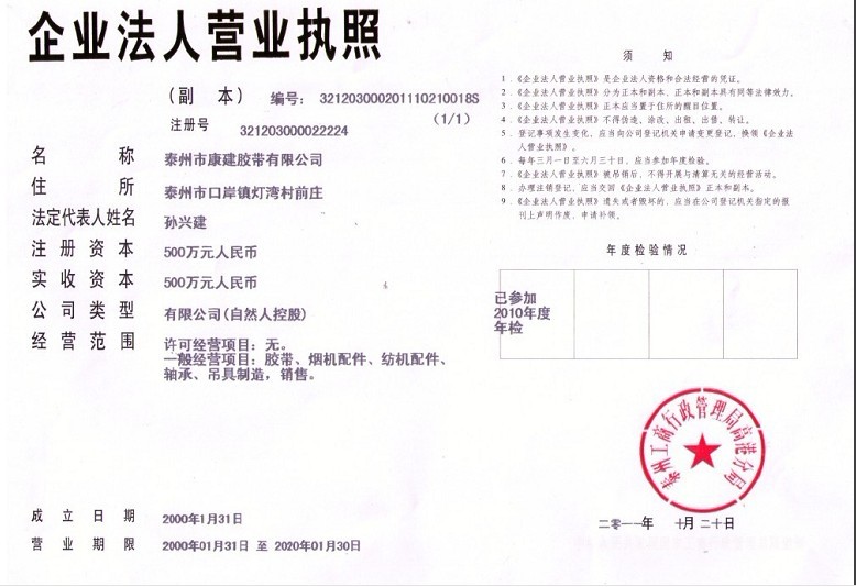 泰州市康建膠帶有限公司經過二十多年的發展